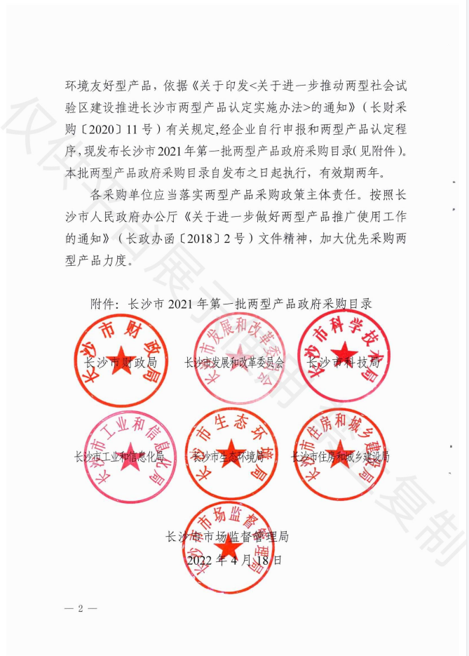 產(chǎn)品入選長沙市兩型產(chǎn)品政府采購目錄