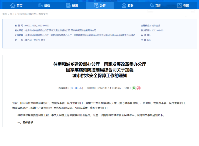 近日,關(guān)于加強(qiáng)城市供水安全保障工作的通知中明確指出: