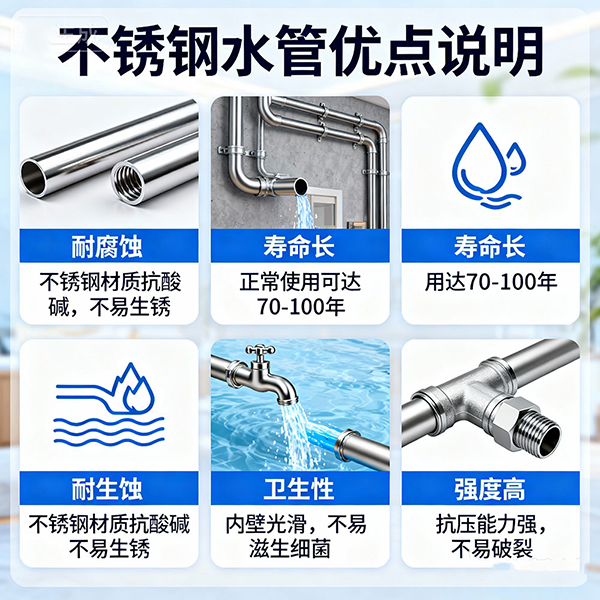 用不銹鋼做水管非常適合,它的優(yōu)點如下: