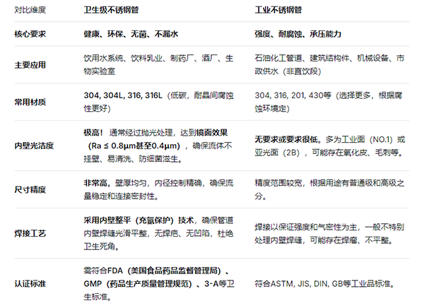作為一名不銹鋼水管廠家的專業(yè)人士,我經(jīng)常被客戶問到:“衛(wèi)生級(jí)不銹鋼管和普通的工業(yè)不銹鋼管,看起來(lái)差不多,到底有啥區(qū)別?能不能通用?”